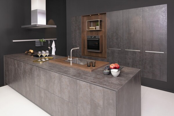 Der Samtmatteffekt bei Küchenmöbelfronten wird durch ein besonderes Silikatmineral im Lack erreicht, das durch seine Porosität das einfallende Licht „schluckt“ und deshalb matt und samtig wirkt. Manchmal werden diese Oberflächen auch „pelle di pesca“ (= Pfirsichhaut) genannt. Die Porosität macht diese Oberfläche gegen stark gefärbte Flüssigkeiten wie z.B. Johannisbeersaft, Tomatenketchup oder Rotwein aber auch Fettspritzer empfindlich. Hier gilt ganz besonders, dass umgehend gereinigt werden muss. Ist der Fleck erst einmal eingetrocknet, kann er meist nicht mehr vollständig entfernt werden. Man kann zwar versuchen, Flecken mit einer weichen Bürste und einem milden Haushaltsreiniger zu behandeln, aber meist ohne großen Erfolg. Mit aggressiveren Mitteln oder Scheuermittel wird die Oberfläche aufpoliert und es entsteht ein hässlicher Glanzfleck.