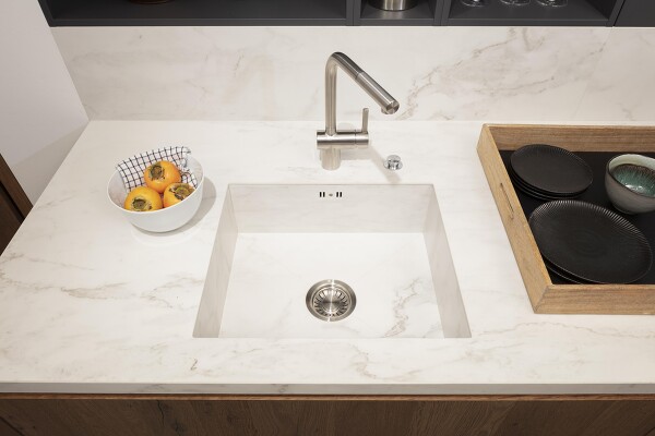 Granit, Marmor, Schiefer oder Kalkstein ist von Natur aus offenporig. Für den Einsatz als Arbeitsplatte wird er daher auch gut versiegelt, sprich imprägniert. Trotzdem bleibt er nicht ganz unempfindlich gegen färbende Lebensmittel oder Fruchtsäuren. So haben gerade essighaltige oder zitronensäurehaltige Reiniger auf Naturstein nichts zu suchen. Marmor ist da gegenüber Granit sogar noch um einiges empfindlicher. Verwenden Sie zum Saubermachen am besten einen Schwamm oder ein Tuch, das Sie vorher in warmem Wasser mit nur wenigen Tropfen Spülmittel befeuchtet haben.